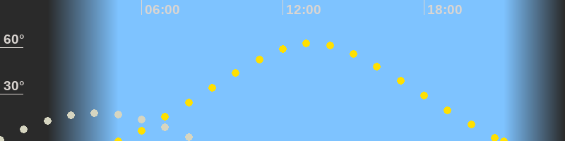 | Höchster Sonnenstand (Kulmination) | 13:13 Uhr (h = 62.5°) |