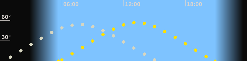 | Höchster Stand (Kulmination) | 07:35 Uhr (h=53.8°) |