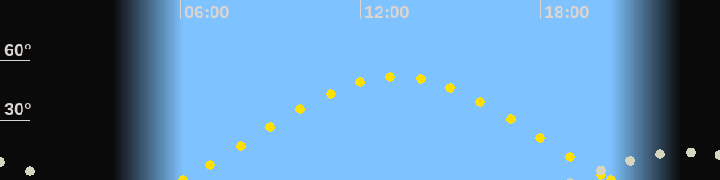 | Sonnenaufgang | 06:05 Uhr im Osten (αAz = 68.7°) |