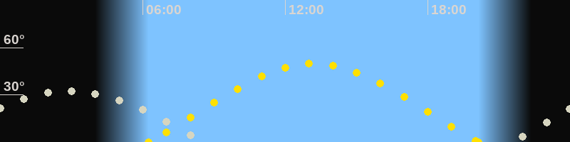 | Sonnenaufgang | 06:14 Uhr im Osten (αAz = 72°) |