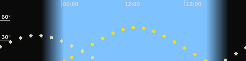 | Sonnenaufgang | 06:15 Uhr im Osten (αAz = 72.6°) |