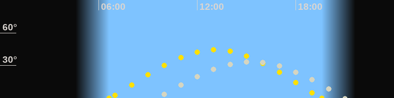 | Sonnenaufgang | 06:37 Uhr im Osten (αAz = 80.8°) |