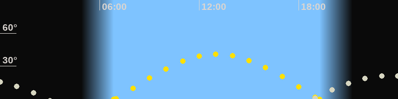 | Sonnenaufgang | 06:51 Uhr im Osten (αAz = 86.2°) |