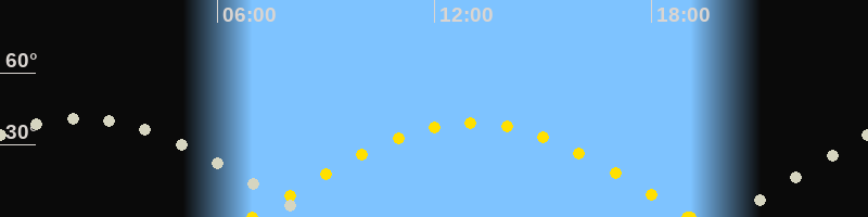 | Höchster Sonnenstand (Kulmination) | 13:02 Uhr (h = 39.1°) |