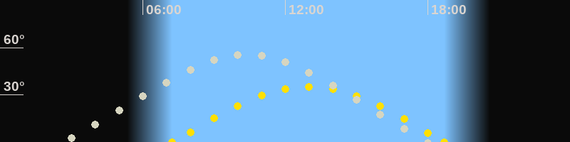 | Sonnenaufgang | 07:14 Uhr im Osten (αAz = 95.5°) |