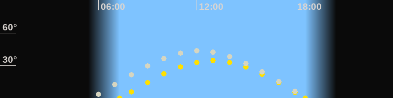 | Sonnenaufgang | 07:17 Uhr im Osten (αAz = 96.7°) |
