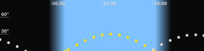 | Höchster Sonnenstand (Kulmination) | 12:55 Uhr (h = 30°) |