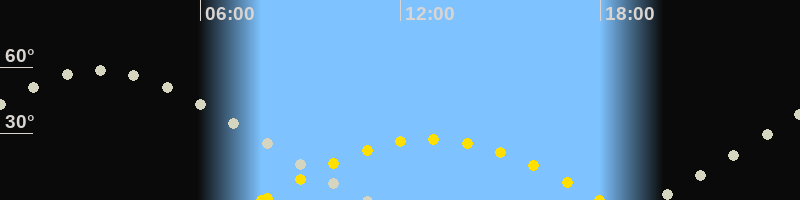 | Höchster Sonnenstand (Kulmination) | 12:54 Uhr (h = 27.5°) |