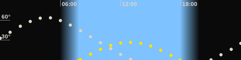 | Höchster Sonnenstand (Kulmination) | 12:54 Uhr (h = 26.8°) |