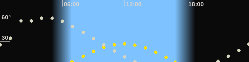 | Höchster Sonnenstand (Kulmination) | 11:54 Uhr (h = 26.4°) |
