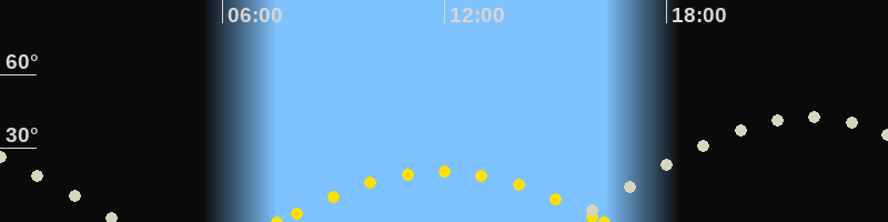 | Höchster Sonnenstand (Kulmination) | 11:55 Uhr (h = 20.5°) |