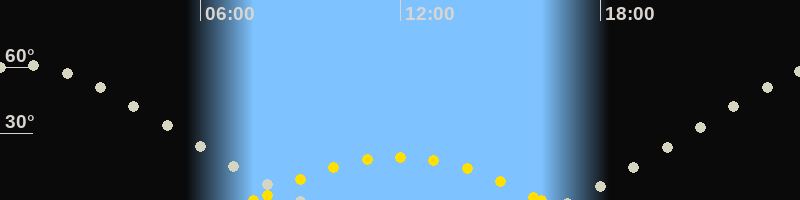 | Höchster Sonnenstand (Kulmination) | 11:56 Uhr (h = 19.3°) |