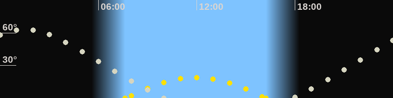| Höchster Sonnenstand (Kulmination) | 11:56 Uhr (h = 19.1°) |