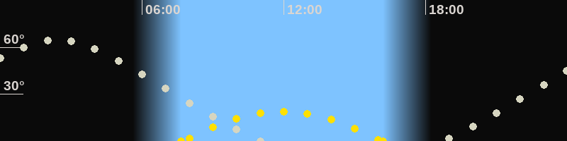 | Höchster Sonnenstand (Kulmination) | 11:56 Uhr (h = 18.9°) |