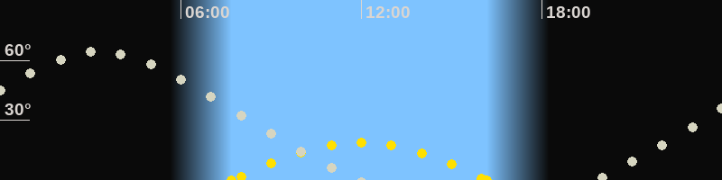 | Höchster Sonnenstand (Kulmination) | 11:56 Uhr (h = 18.7°) |