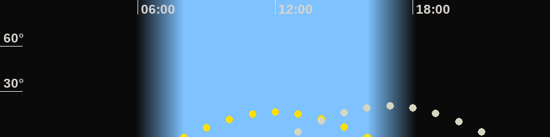 | Höchster Sonnenstand (Kulmination) | 12:02 Uhr (h = 16.4°) |