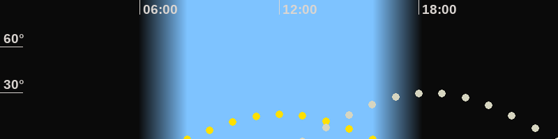 | Höchster Stand (Kulmination) | 18:21 Uhr (h=29.9°) |