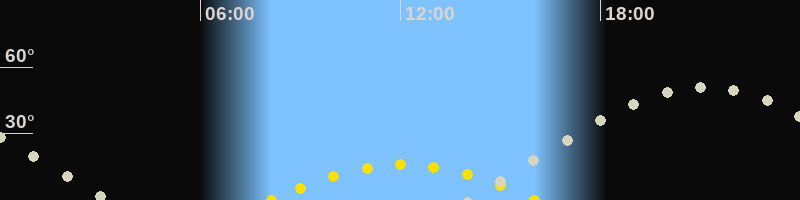| Höchster Sonnenstand (Kulmination) | 12:05 Uhr (h = 16°) |