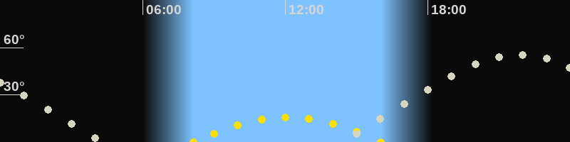 | Höchster Sonnenstand (Kulmination) | 12:05 Uhr (h = 16°) |