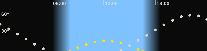 | Höchster Sonnenstand (Kulmination) | 12:19 Uhr (h = 18.1°) |