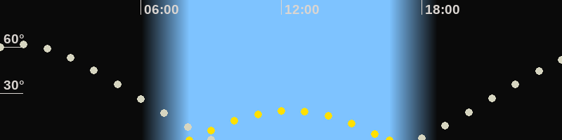 | Höchster Sonnenstand (Kulmination) | 12:20 Uhr (h = 18.9°) |