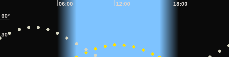 | Höchster Sonnenstand (Kulmination) | 12:21 Uhr (h = 19.6°) |