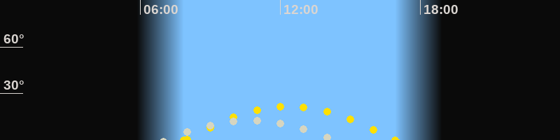 | Höchster Sonnenstand (Kulmination) | 12:23 Uhr (h = 21.6°) |