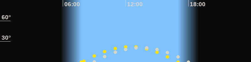 | Höchster Sonnenstand (Kulmination) | 12:23 Uhr (h = 22.4°) |