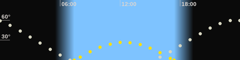 | Höchster Sonnenstand (Kulmination) | 12:24 Uhr (h = 26.6°) |