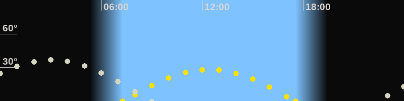 | Höchster Sonnenstand (Kulmination) | 12:23 Uhr (h = 28.3°) |