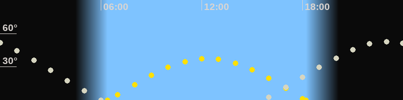 Höchster Sonnenstand (Kulmination)12:18 Uhr (h = 37.5°)