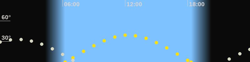 Höchster Sonnenstand (Kulmination)12:17 Uhr (h = 39.1°)