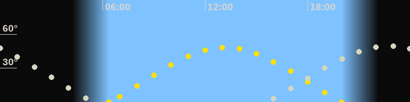 | Sonnenaufgang | 06:22 Uhr im Osten (αAz = 75.2°) |