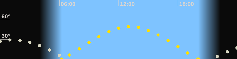 | Sonnenaufgang | 06:14 Uhr im Osten (αAz = 72.8°) |