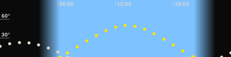 | Sonnenaufgang | 06:12 Uhr im Osten (αAz = 72.3°) |