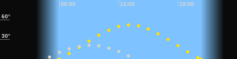 | Sonnenaufgang | 05:58 Uhr im Osten (αAz = 68.4°) |