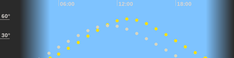 | Höchster Sonnenstand (Kulmination) | 13:07 Uhr (h = 60.7°) |
