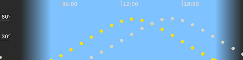 | Höchster Sonnenstand (Kulmination) | 13:08 Uhr (h = 61.7°) |
