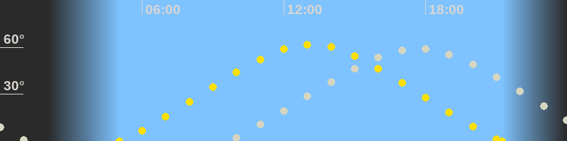 | Höchster Sonnenstand (Kulmination) | 13:08 Uhr (h = 61.8°) |