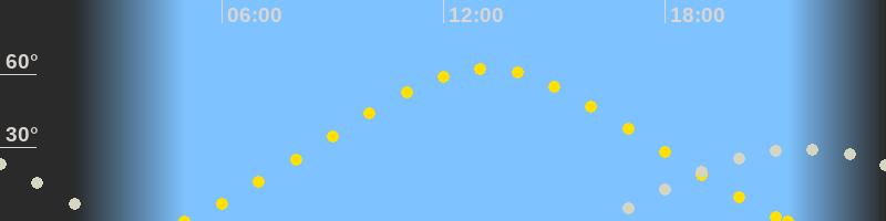 | Höchster Sonnenstand (Kulmination) | 13:09 Uhr (h = 62.3°) |