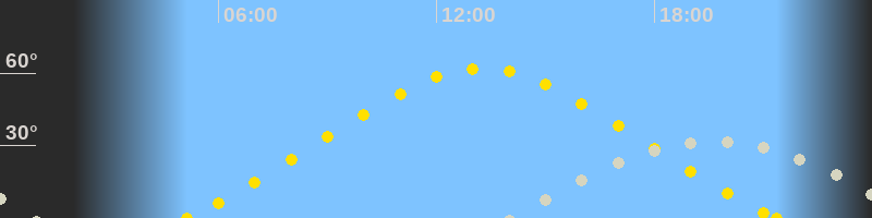 | Höchster Sonnenstand (Kulmination) | 13:15 Uhr (h = 61.9°) |