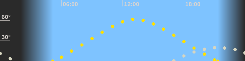 | Höchster Sonnenstand (Kulmination) | 13:15 Uhr (h = 61.6°) |