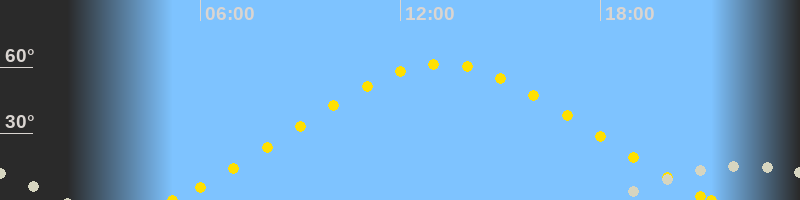 | Höchster Sonnenstand (Kulmination) | 13:15 Uhr (h = 61.5°) |