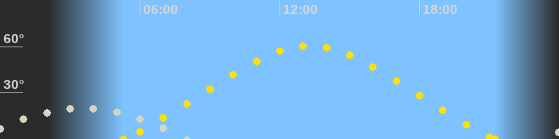 | Höchster Sonnenstand (Kulmination) | 13:16 Uhr (h = 60.7°) |
