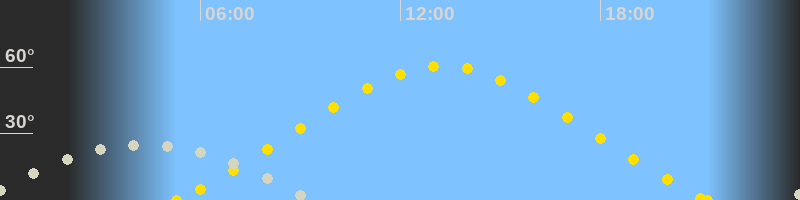 | Höchster Sonnenstand (Kulmination) | 13:16 Uhr (h = 60.5°) |