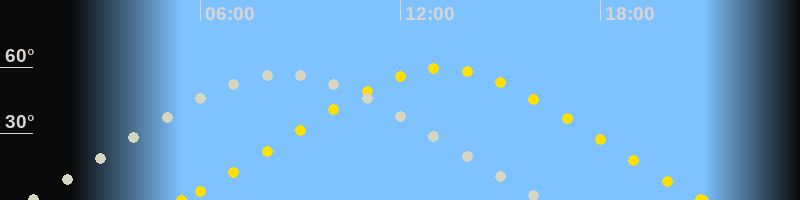| Höchster Sonnenstand (Kulmination) | 13:16 Uhr (h = 59.4°) |