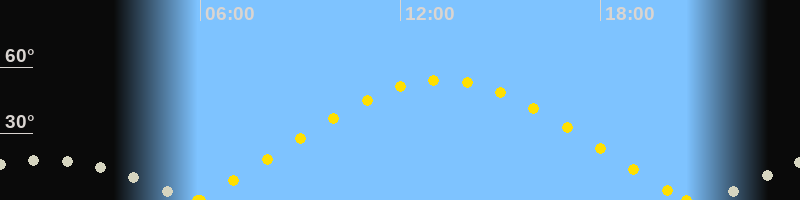 | Höchster Sonnenstand (Kulmination) | 13:15 Uhr (h = 54.3°) |