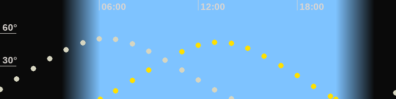 | Höchster Stand (Kulmination) | 06:18 Uhr (h=54.9°) |