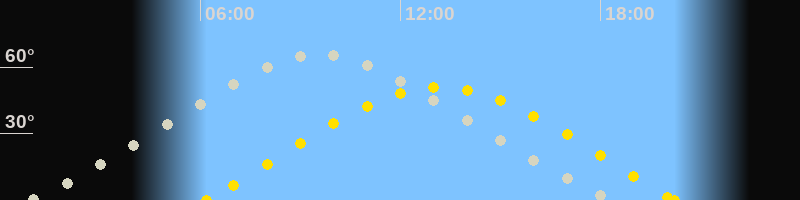 | Höchster Stand (Kulmination) | 09:32 Uhr (h=65.5°) |