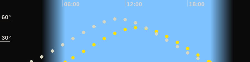 | Sonnenaufgang | 06:14 Uhr im Osten (αAz = 71.9°) |